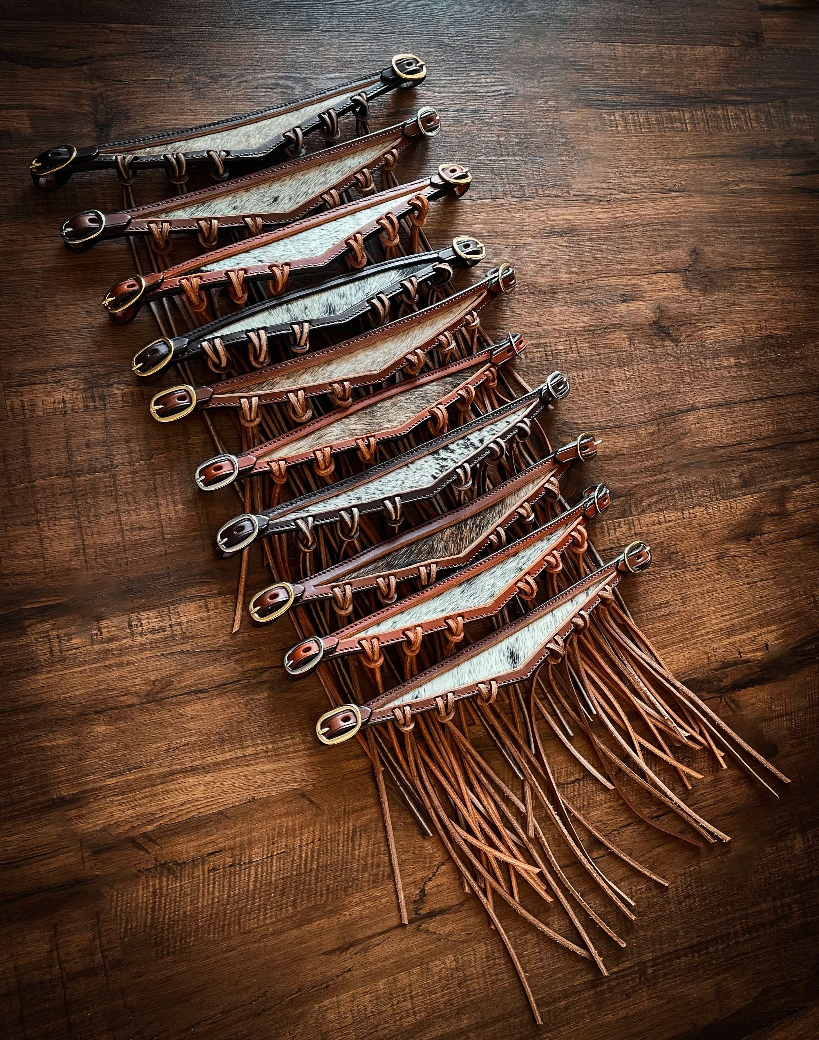 Stunning inlay cowhide fly veils made from top quality leather, stainless and brass hardware.