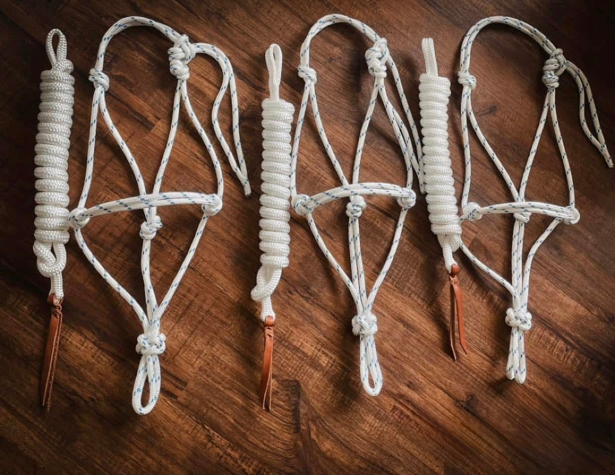 Quality 8mm halters with leads, correct knots and no clips on leads. perfect for everyday use.