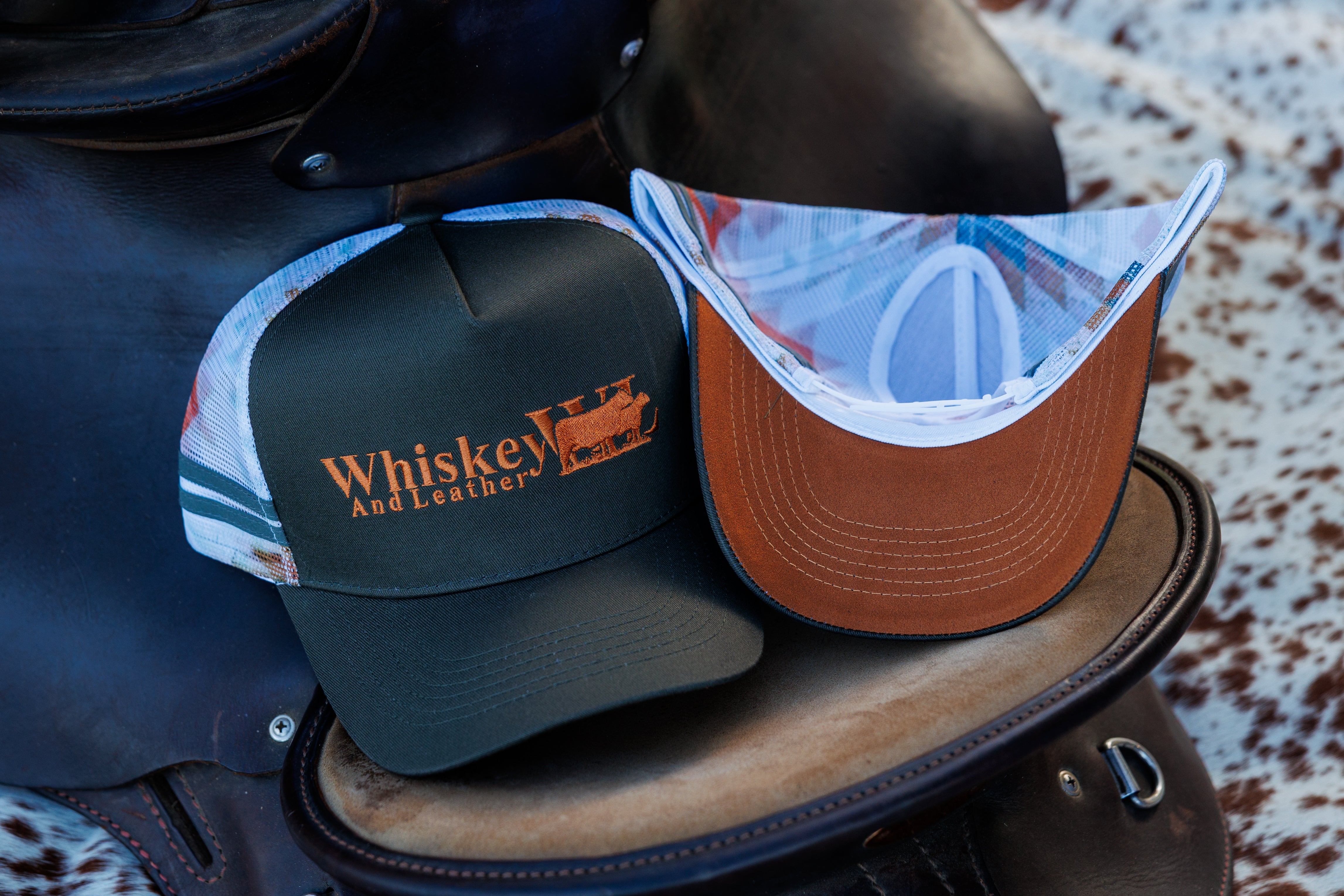 The super popular Olive and tartan trucker cap, featuring a stunning picture from a station in North Qld