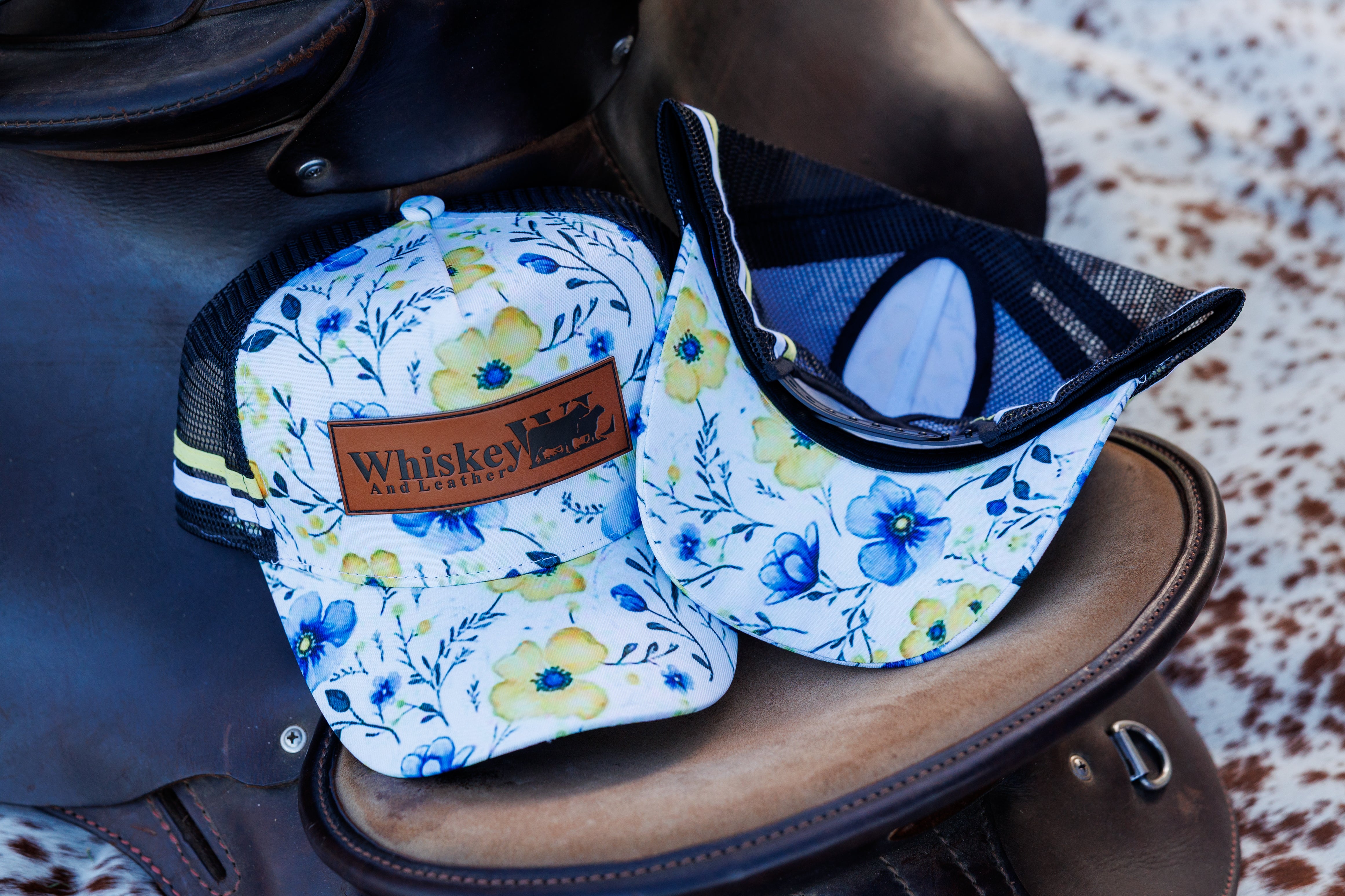 Ladies Blue Floral Truckers Cap