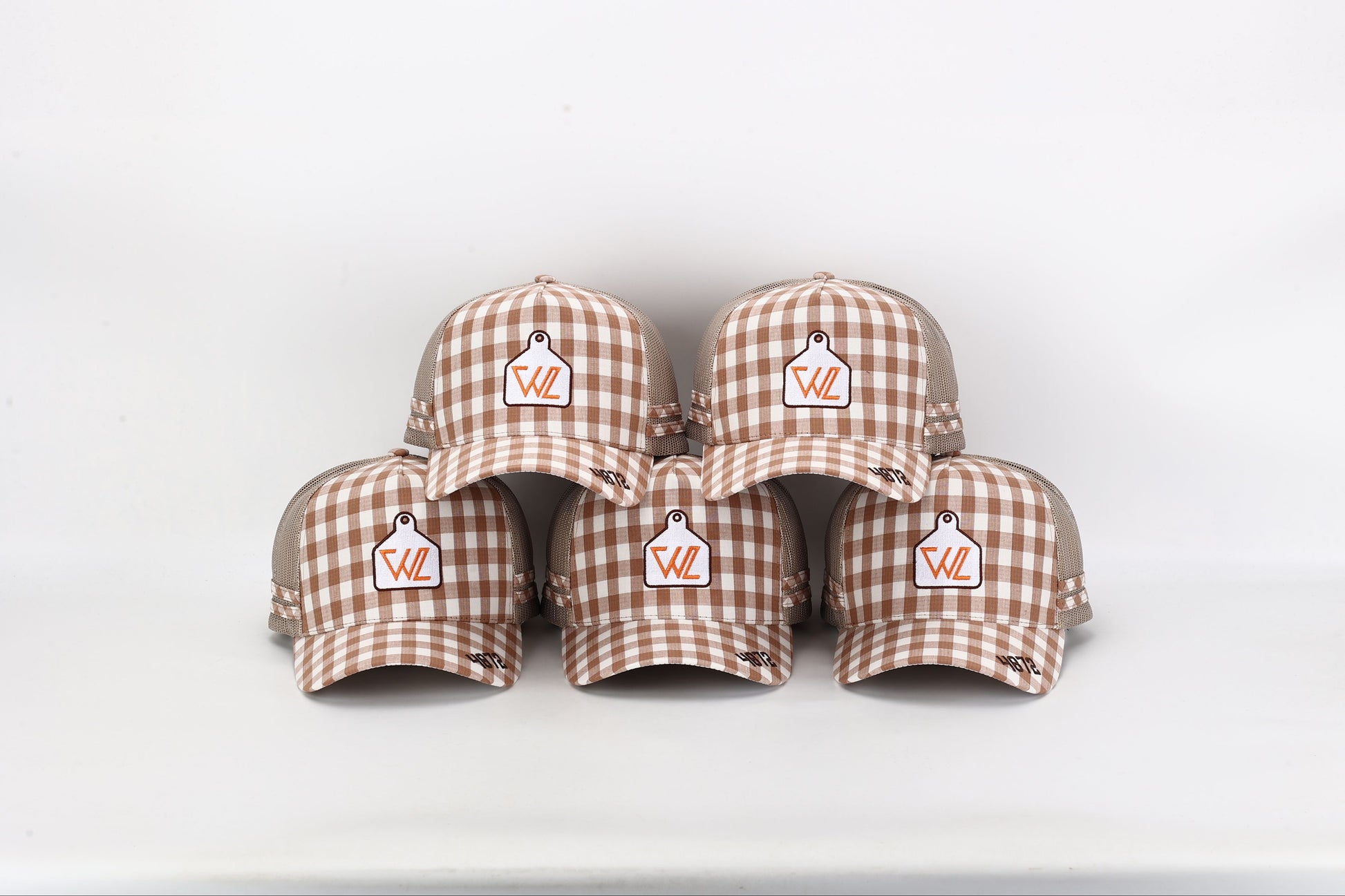 With a beige and white gingham front panel, breathable mesh back and bold orange WL tag logo embroidery, it strikes the perfect balance between comfort and standout detail.
